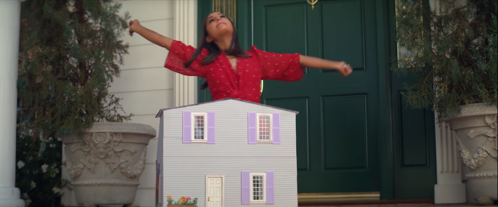She then references "13 Going on 30" (2004) starring Jennifer Garner as a teenager stuck in the body of a 30 year old. Ariana references the scene of the dollhouse on the staircase.